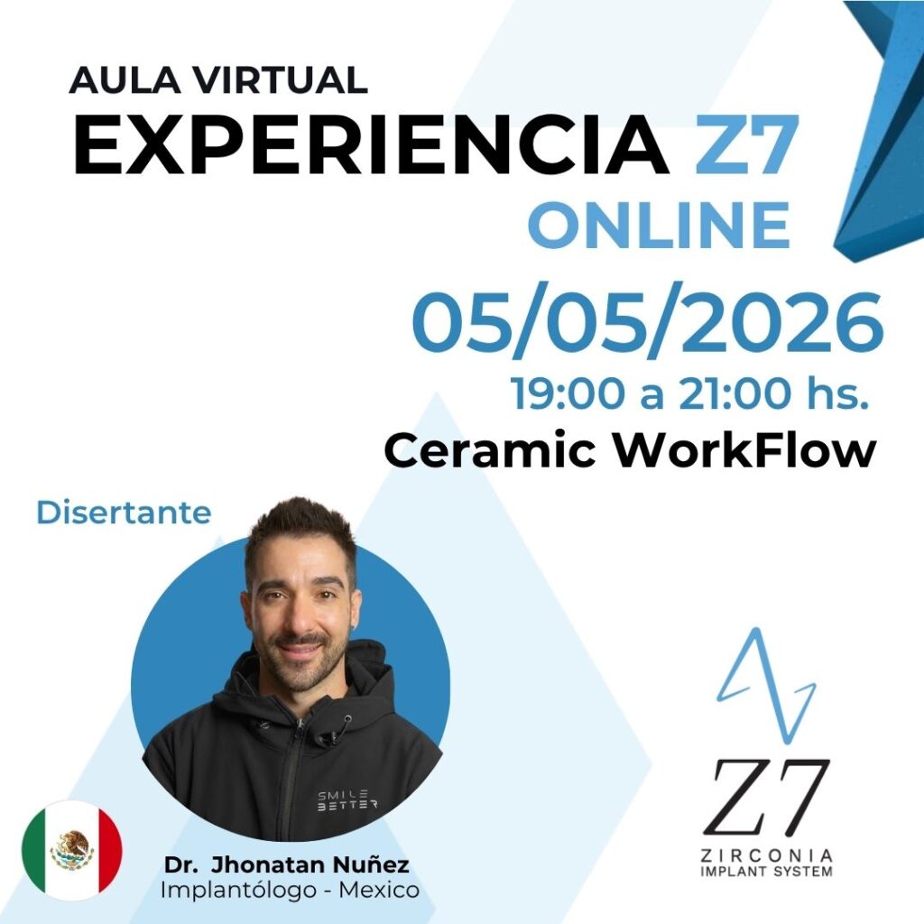 En estos encuentros exclusivos, con un formato online, dinámico y profesional, los participantes podrán explorar los fundamentos de la implantología cerámica, conocer más sobre la utilización de la Zirconia en la implantologia dental y descubrir el funcionamiento de los implantes Z7 de la mano de prestigiosos doctores asesores, quienes compartirán su experiencia clínica y responderán consultas en vivo.